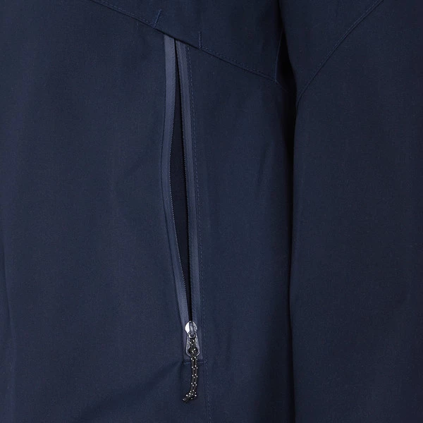 Das robuste Außenmaterial hat einen kräftigen, aber dennoch angenehm weichen Griff. Dadurch fühlt sich die Jacke eher wie eine komfortable Übergangsjacke an als eine Regenjacke. Und dennoch: Das Material ist dank seiner PU-Beschichtung zuverlässig wind- und wasserdicht. Die PFC-freie Imprägnierung verhindert währenddessen, dass Nässe überhaupt erst in das Material eindringen kann.