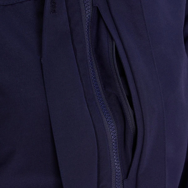 - Abnehmbare Kapuze mit Volumenregulierung vorne und hinten (dort mit einfachem Klettverschluss)