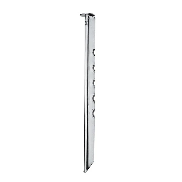 23 cm langer Hering aus verzinktem Stahl mit V-Profil für Wald- und Wiesenböden. Ideal zum Aufstellen von mittelgroßen Zelten.